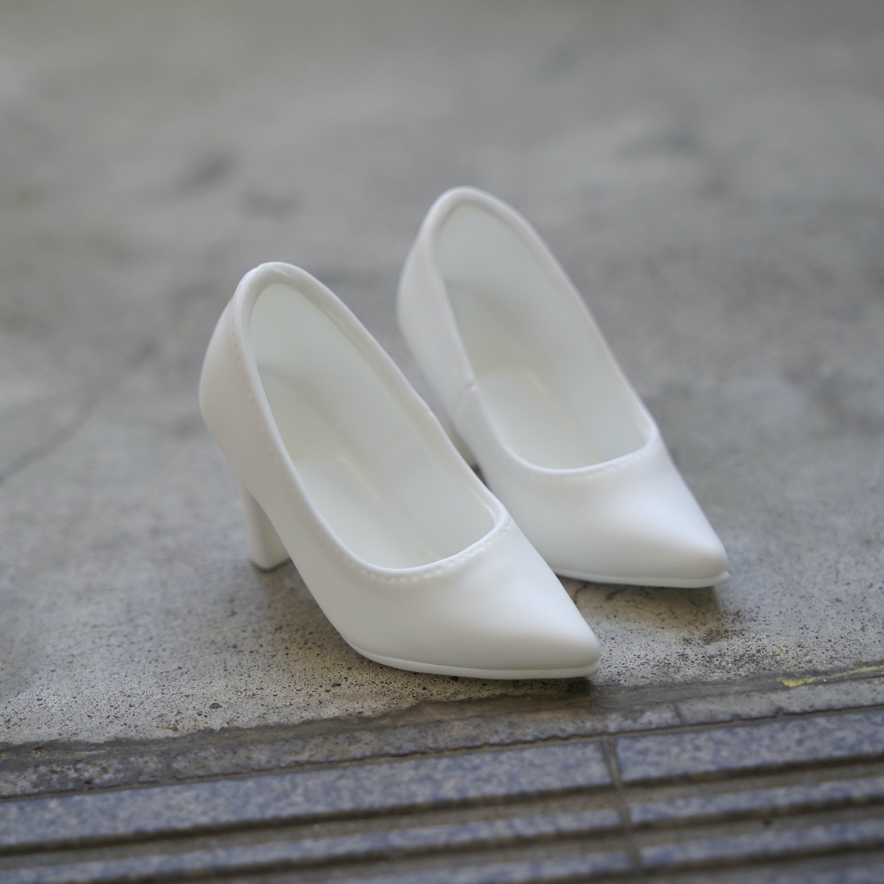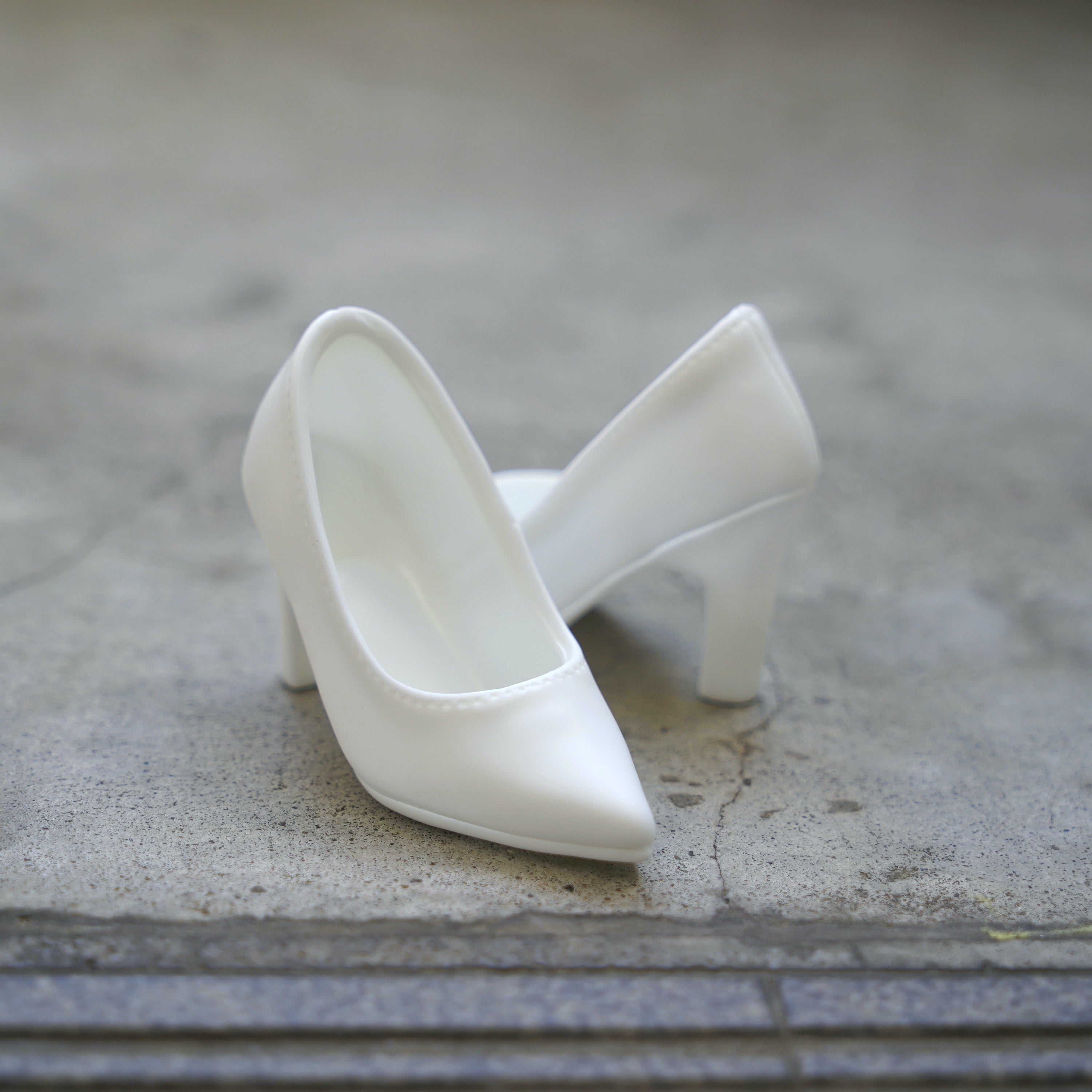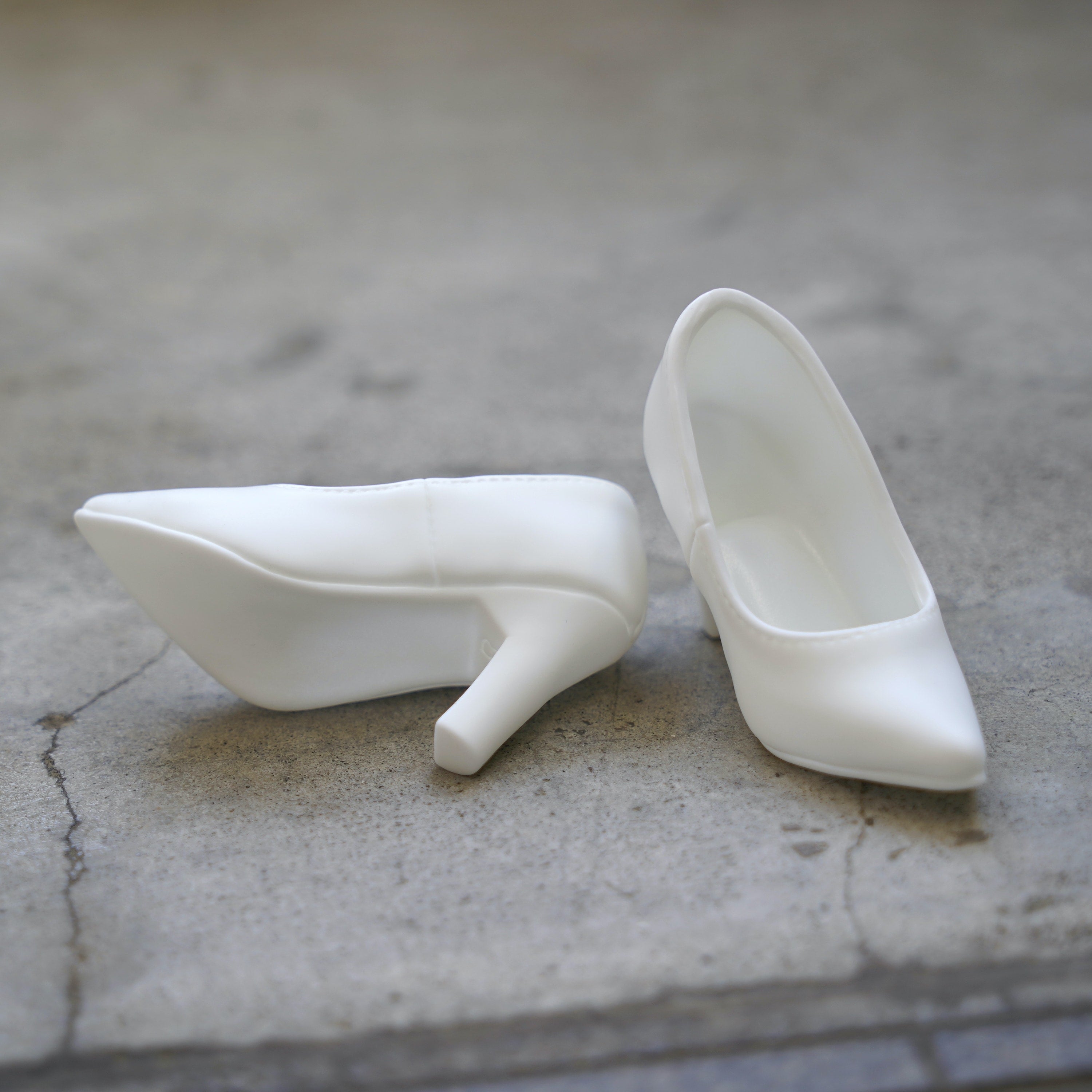 The mold of these vinyl pumps was made from an actual pair of leather pumps. By creating the mold this way, we managed to replicate the imperfections of the human stitched version.