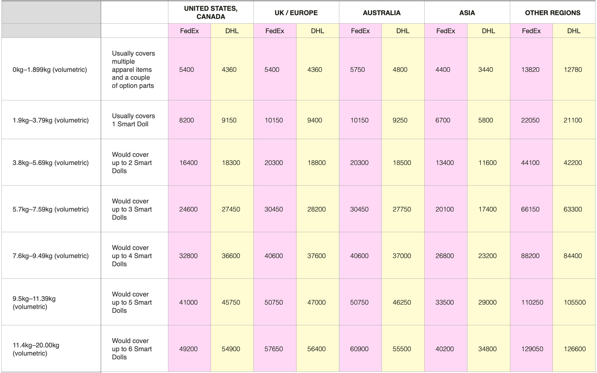 Both DHL and FedEx calculate charges based on volumetric weight. This means that even if a product weighs just 100 grams, if its size exceeds the volume of the lowest tier, the cost jumps to the second tier.