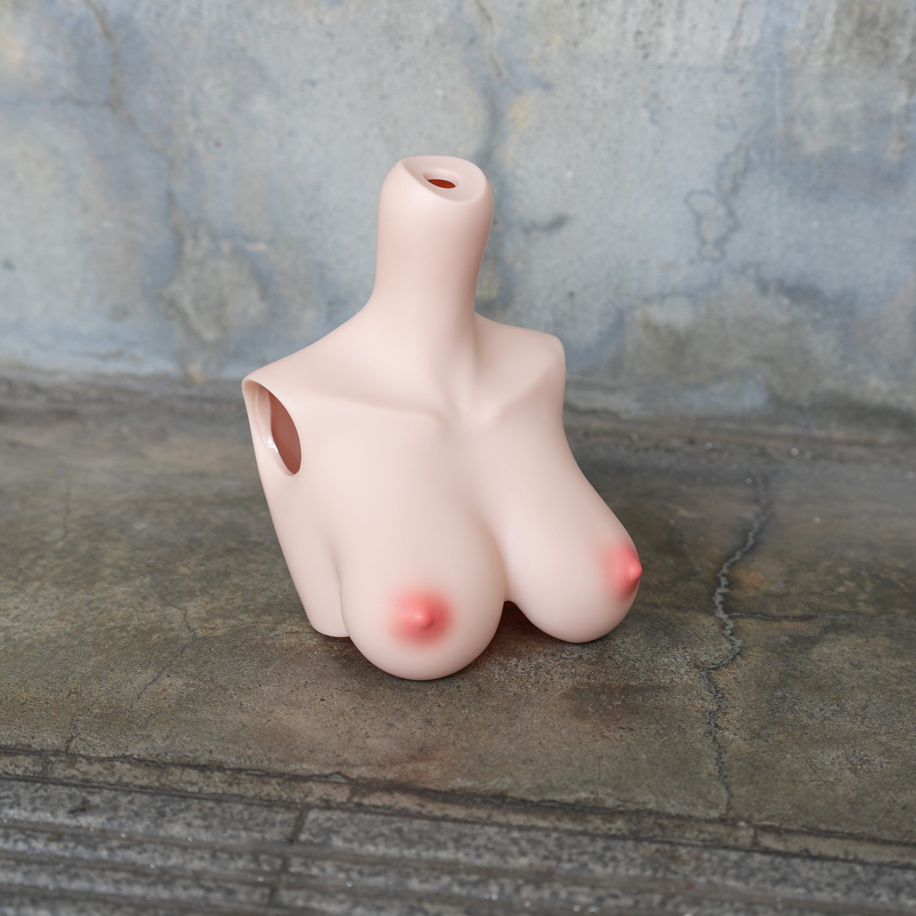 Air pockets and pinholes naturally occur in all bust parts during the casting process. These can result from trapped air in the vinyl or imperfections on the inner mold surface. Pinholes are small surface voids, while air pockets may be covered by a thin layer of vinyl, sometimes breaking through over time. They vary in size and may not be immediately visible, but they are always present to some degree. Their visibility is random, making each piece unique. You can learn more about the slush casting process in the Knowledge Base.