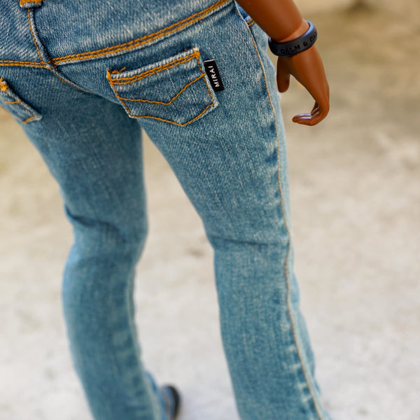 - For those considering these jeans, especially when paired with stain prevention leggings, it’s important to note that they have a tight fit, which might make dressing your doll more challenging. Our advice is to firmly pull the jeans over the bottom area. If you’re concerned about the difficulty of putting them on due to the snug fit, this product might not be suitable for you.