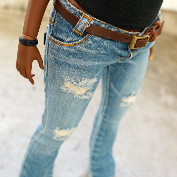 - Over time, as your Smart Doll wears these jeans, the laddering may extend into larger holes. We recommend being careful when putting them on to avoid catching the feet in the rips.