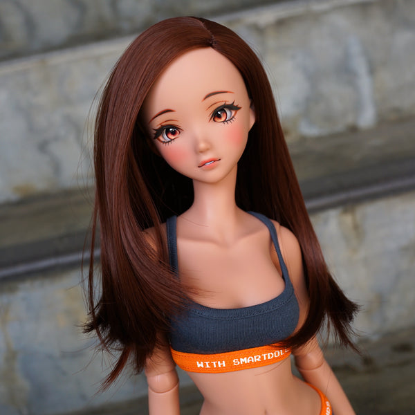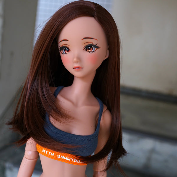 Smart Doll wigs are shaped by hand—not by mold—so variation is natural. You may notice differences in thickness, alignment, or shape from one wig to the next. Some may appear “balding” in spots or shed small amounts of hair when first opened and with continued use. Tight fits can leave marks on the head, and a bit of styling oil residue is also expected. (images 1 - 4)