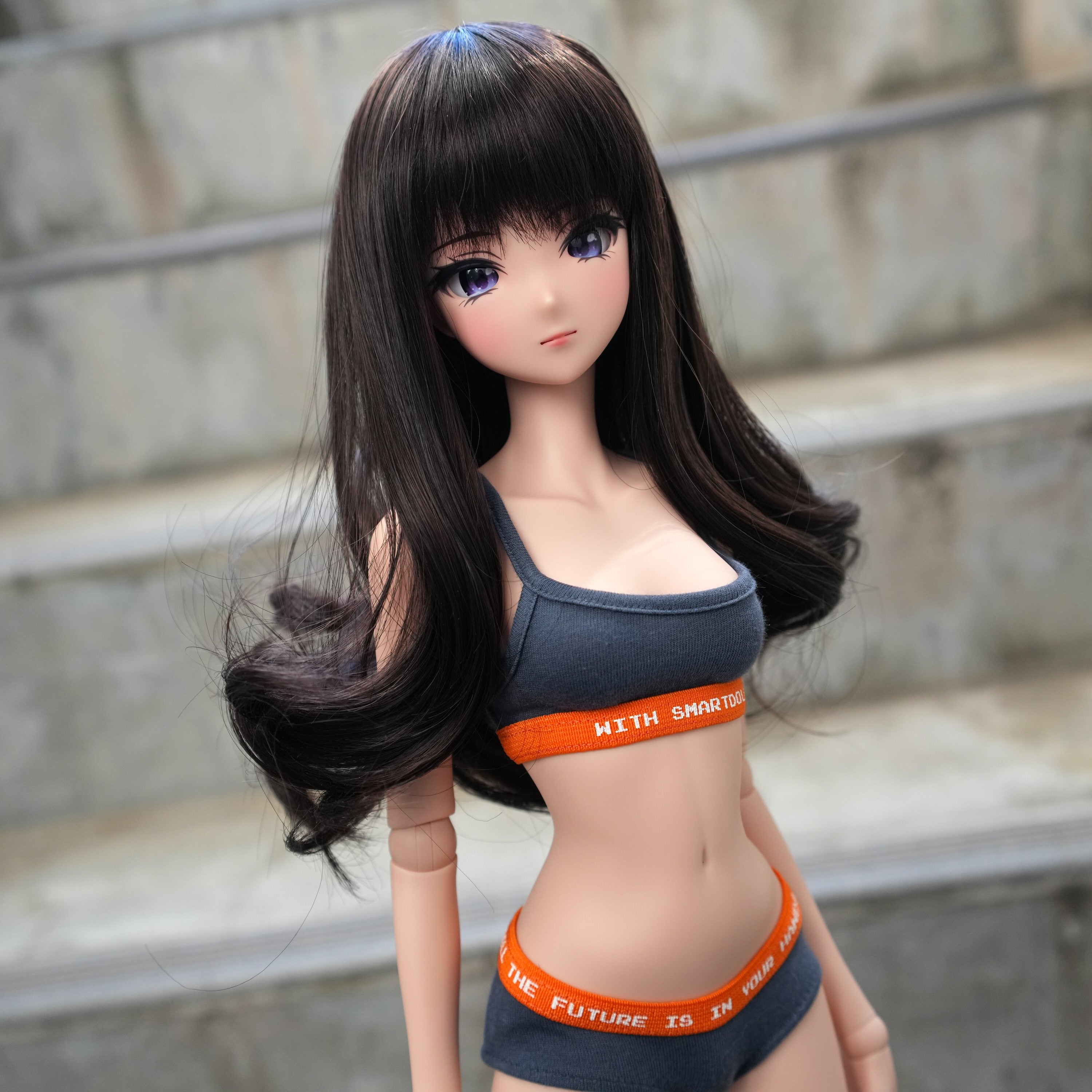 Smart Doll wigs are shaped by hand—not by mold—so variation is natural. You may notice differences in thickness, alignment, or shape from one wig to the next. Some may appear “balding” in spots or shed small amounts of hair when first opened and with continued use. Tight fits can leave marks on the head, and a bit of styling oil residue is also expected. (images 1 - 4)