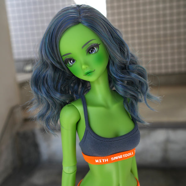 Smart Doll wigs are shaped by hand—not by mold—so variation is natural. You may notice differences in thickness, alignment, or shape from one wig to the next. Some may appear “balding” in spots or shed small amounts of hair when first opened and with continued use. Tight fits can leave marks on the head, and a bit of styling oil residue is also expected. (images 1 - 4)