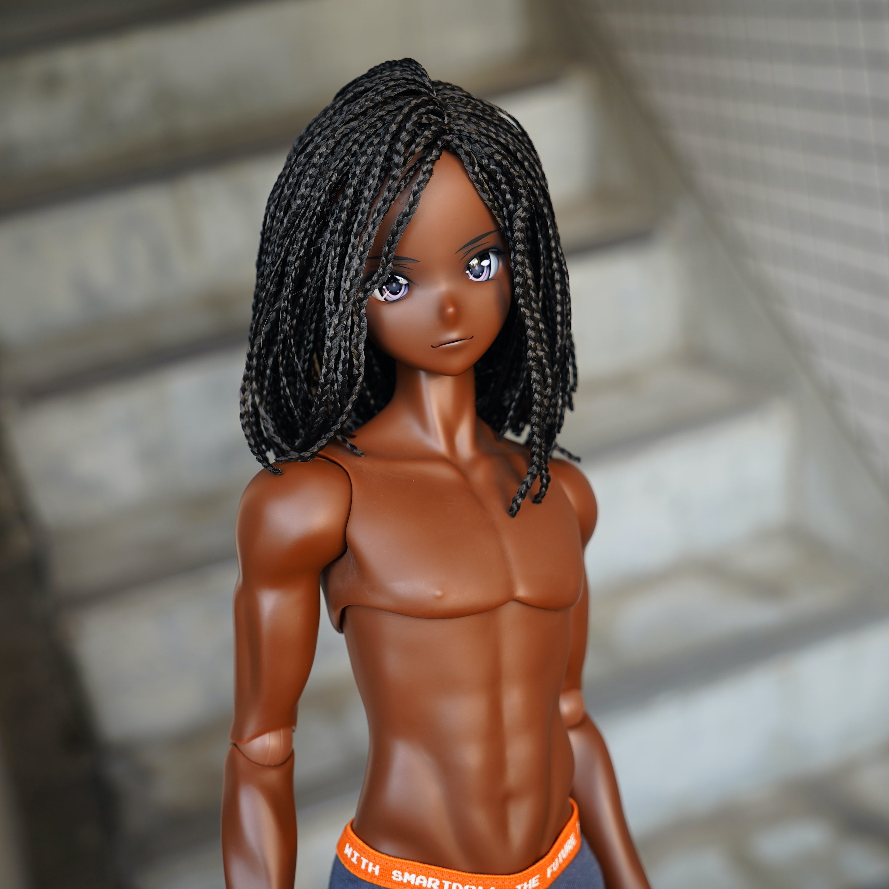 Smart Doll wigs are shaped by hand—not by mold—so variation is natural. You may notice differences in thickness, alignment, or shape from one wig to the next. Some may appear “balding” in spots or shed small amounts of hair when first opened and with continued use. Tight fits can leave marks on the head, and a bit of styling oil residue is also expected. (images 1 - 4)