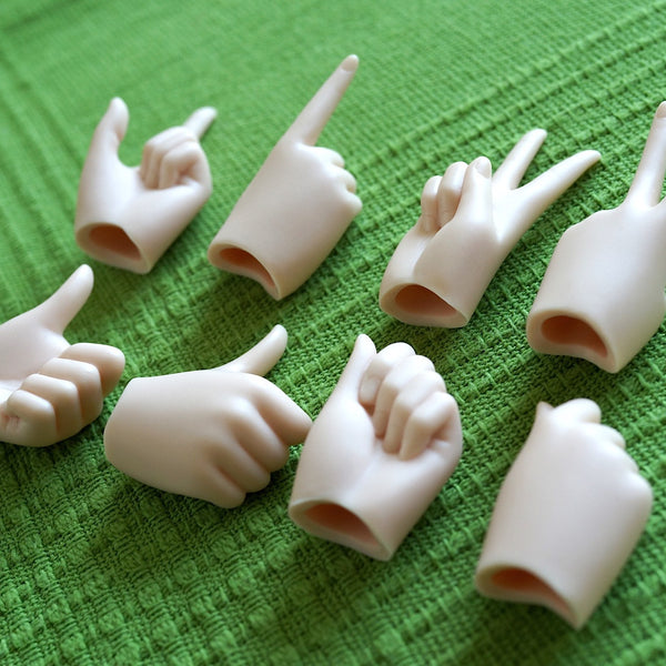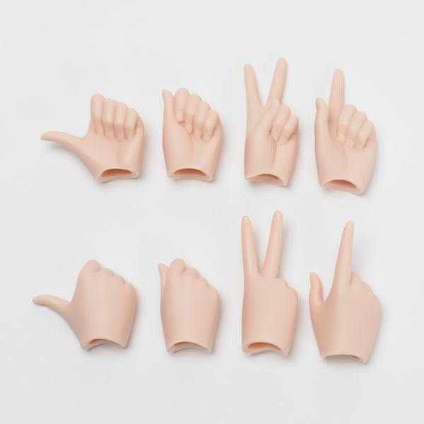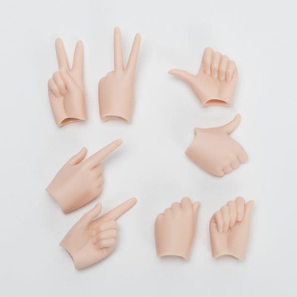 Option hand part one for Smart Doll girls which include "point" "peace" "clasp" and "thumbs up/down."