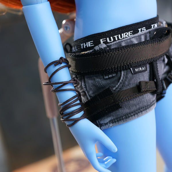 The surface has been given a worn blemished look with scratches. The strap is left purposely long where you can tie a knot where you want depending on the apparel item you are wearing - then roll the excess cord and tuck it behind inside the top your Smart Doll is wearing.