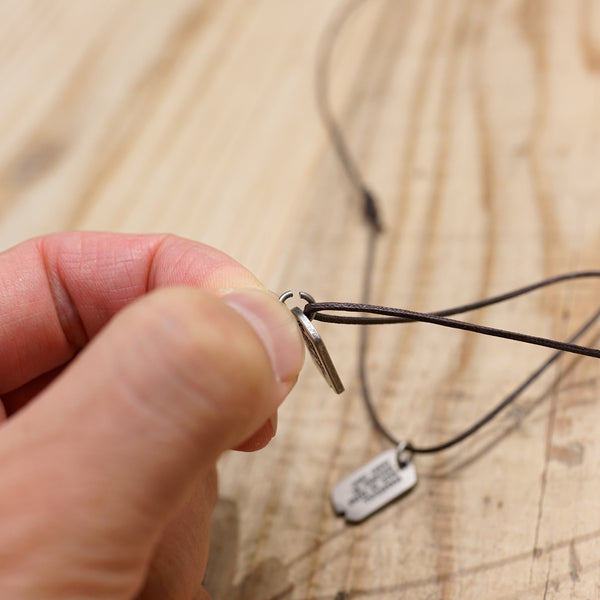 If you do buy two dog tags to wear on the same cord then you can use the remaining cord to wrap around the wrist. Have a look at the photo to see how you should do this. Instead of winding the cord around the wrist, do a criss cross back and forth around the wrist which will give you a more random look and feel.