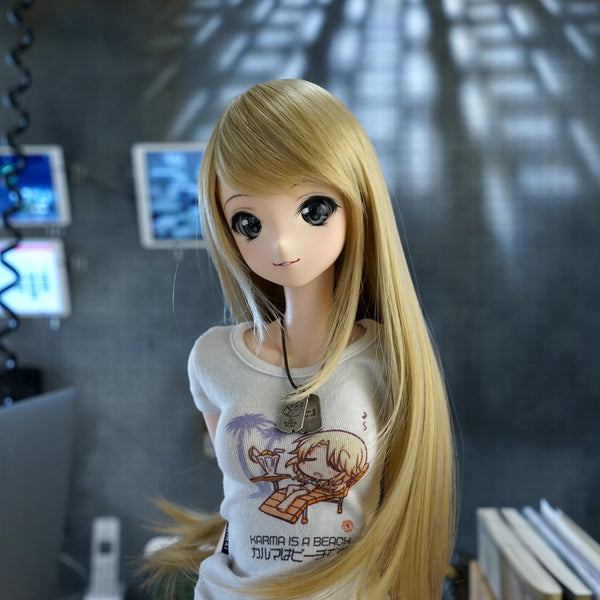 This head will come with the default Milk vinyl body packed as a Simplicity Kit. Headcap is vinyl orange and will not be a perfect fit. The wig and eyes in the photos are included.