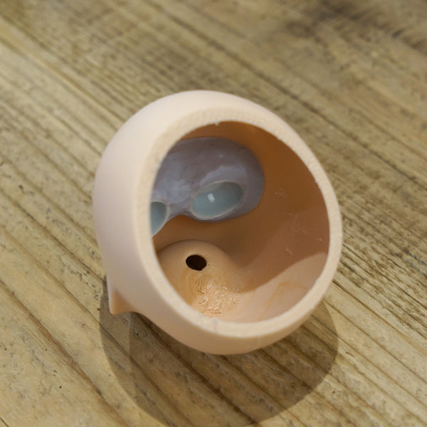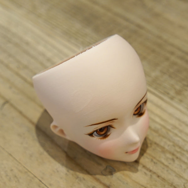 Only one was ever made of this candidate that didn't make the cut. This head will come with the default Milk vinyl body packed as a Simplicity Kit. Headcap is vinyl orange and will not be a perfect fit. The wig and eyes in the photos are included.