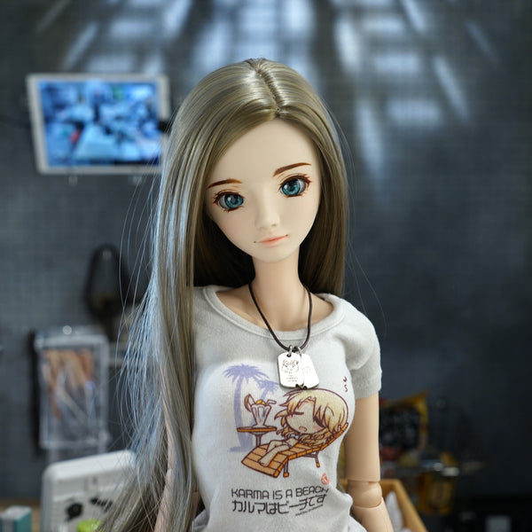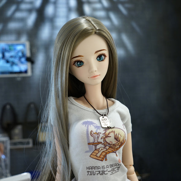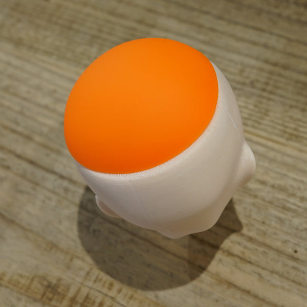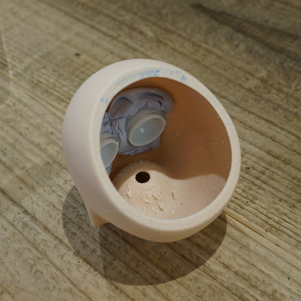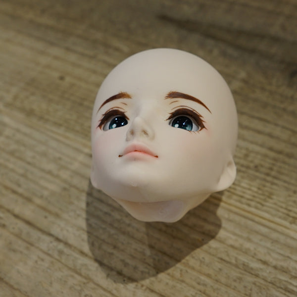 Only one was ever made of this candidate that didn't make the cut. This head will come with the default Milk vinyl body packed as a Simplicity Kit. Headcap is vinyl orange and will not be a perfect fit. The wig and eyes in the photos are included.