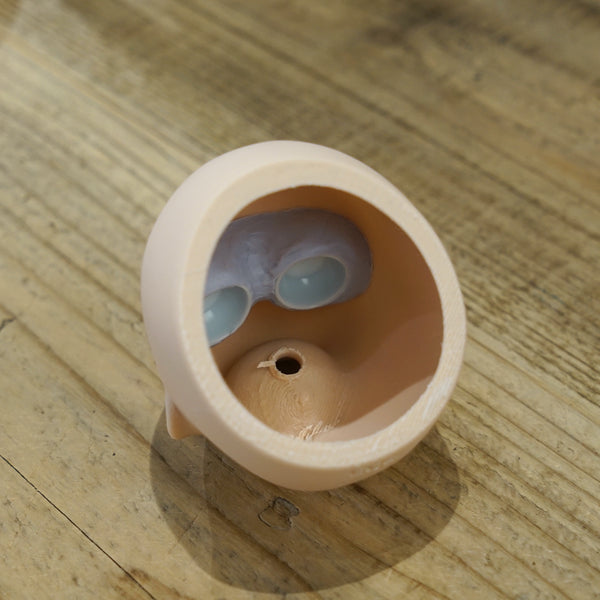 Only one was ever made of this candidate that didn't make the cut. This head will come with the default Milk vinyl body packed as a Simplicity Kit. Headcap is vinyl orange and will not be a perfect fit. The wig and eyes in the photos are included.
