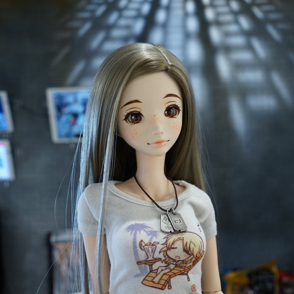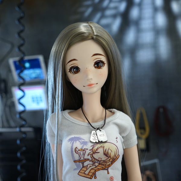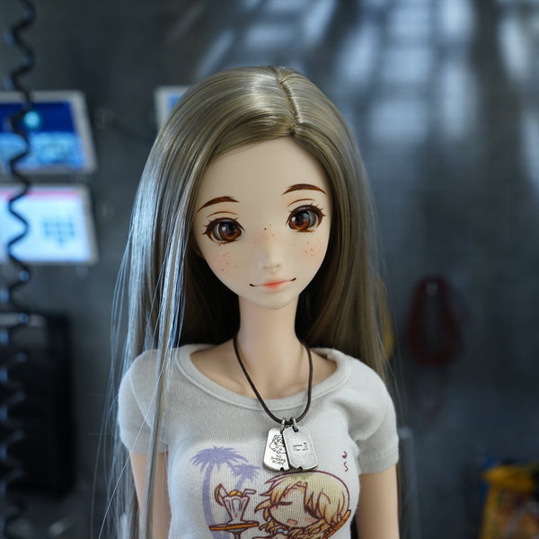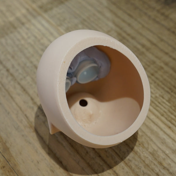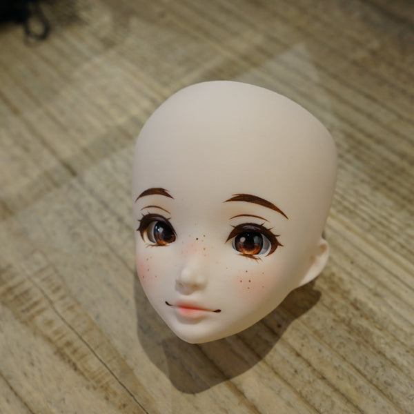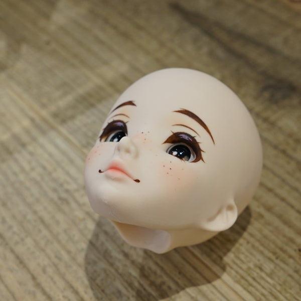 Only one was ever made of this candidate that didn't make the cut. This head will come with the default Milk vinyl body packed as a Simplicity Kit. Headcap is vinyl orange and will not be a perfect fit. The wig and eyes in the photos are included.