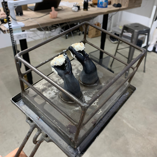 This was the master mold of the grabby hands - we don't use this mold anymore because the grabby hands have been updated with a tighter fit around the wrist.