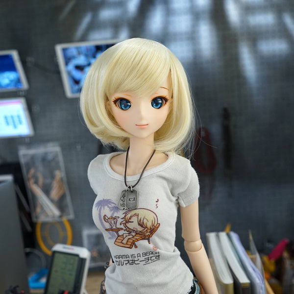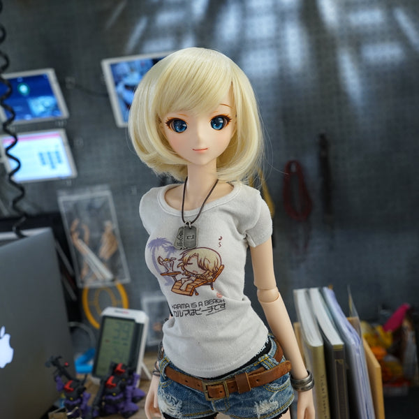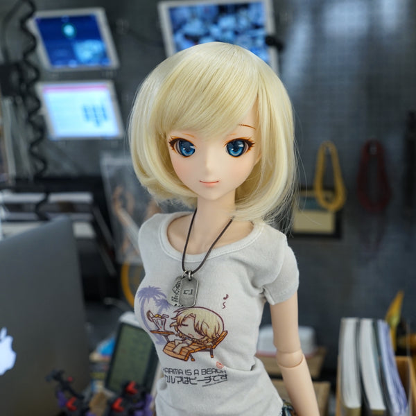 This head will come with the default Milk vinyl body packed as a Simplicity Kit. Headcap is vinyl orange and will not be a perfect fit. The wig and eyes in the photos are included.