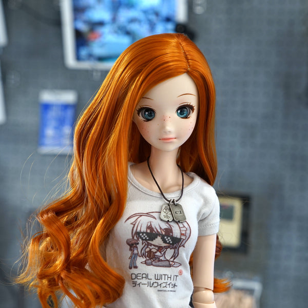 This head will come with the default Milk vinyl body packed as a Simplicity Kit. Headcap is vinyl orange and will not be a perfect fit. The wig and eyes in the photos are included.