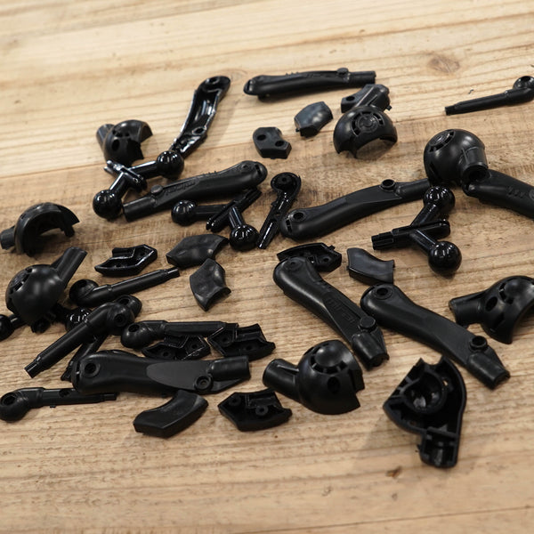 This is not complete frame set and was made to test some tweaks. Parts are black and made of POM.