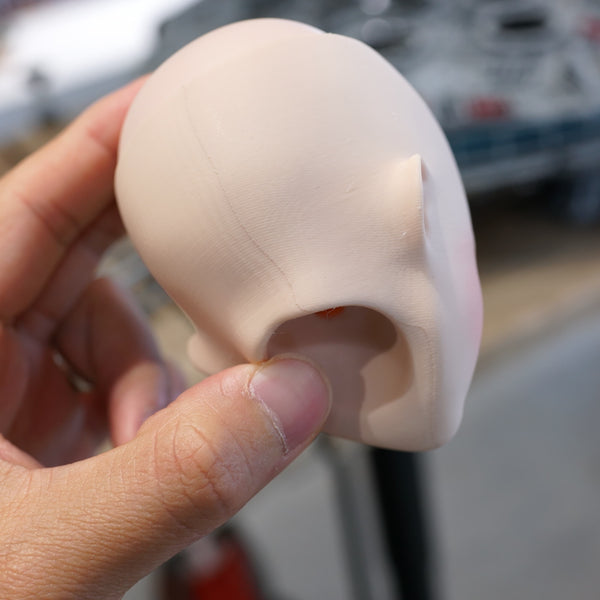 Do note that the head is 3D printed and is very rough around the edges - especially on the bits the wig covers. Will not be an exact match to the Milk body in terms of skin tone. The face still shows the stepping from the 3D print. Please check photos before buying.