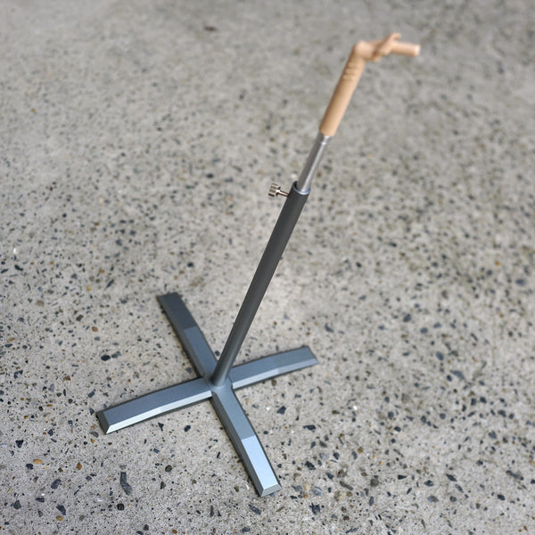 室内での展示ならこのエアスタンド、お出かけの場合はトライポッドスタンドをオススメしています。外棒は改造なしでこのようにカメラの三脚に取り付けることができます。