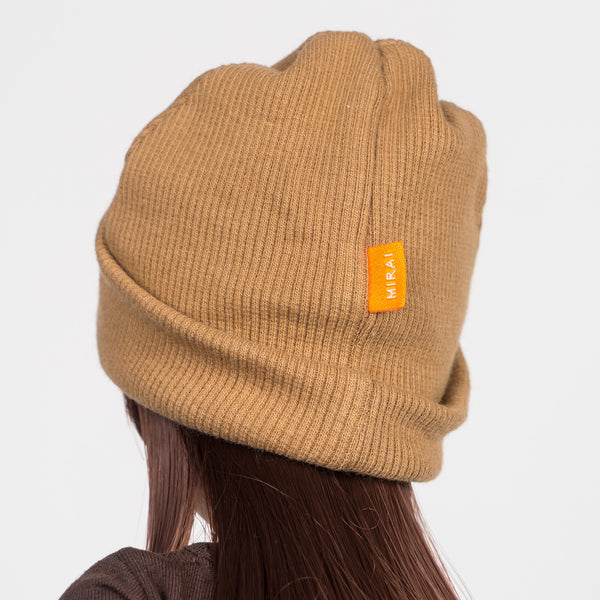 This beanie would go well with the dark brown cardigan or brown hippie top.
