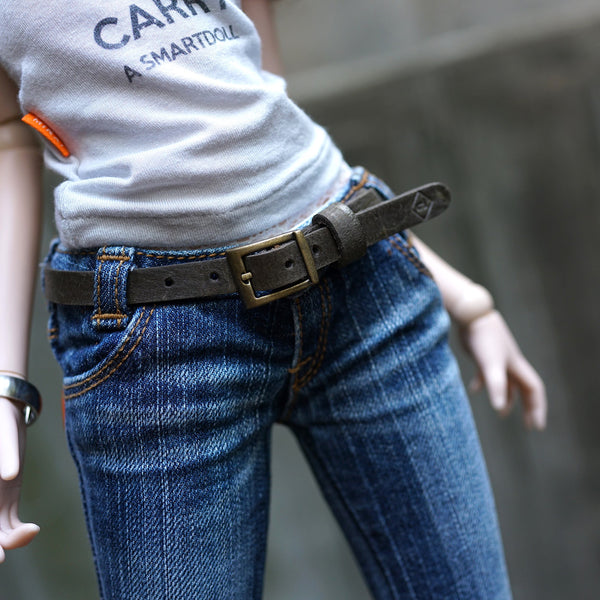 This belt is made of leather and has been given a weathered look - if you want it to look more weathered quicker then just scrunch it up in your hand before looping it. The loops on our belts are really small so unless you have hobbit sized fingers then a pair of tweezers with a bent tip should help loop the belt.
