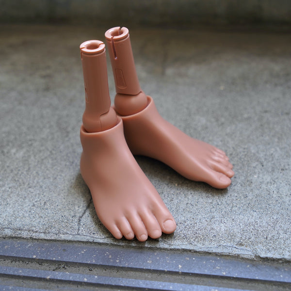 Many moons ago, our smart doll guys used to have bigger...feet. But due to our inability to make bigger shoes, we gave them smaller...feet to fit our current lineup of shoes.