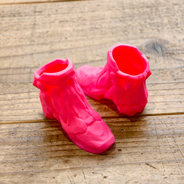 A fusion of organic and mecha design - our new line of Vinyl Bio Mecha footwear results from many (maaany) moons of experimenting with non-conventional shoe-making techniques - 3D printing and vinyl casting - you can see just some of the prototypes below.