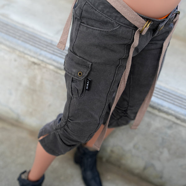 The Cargo Capri Pants are now ready for prime time with an updated design, which includes removable straps. These straps are designed for customization, allowing you to add a personal touch with your choice of color - just remember to provide the alternate color straps yourself. Additionally, you can easily adjust the strap length to suit your desired aesthetic by simply tugging on either end.