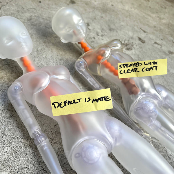 Blue vinyl is cast only when we can fit it into the schedule (human skin tones always get priority), but Clear Vinyl production runs are based on when we need them for research.