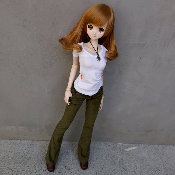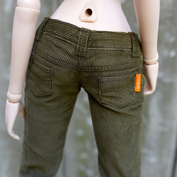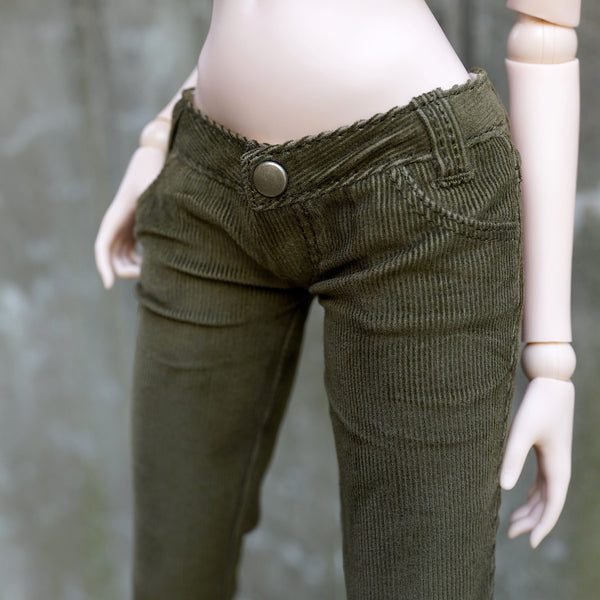 A slightly different lower rise pattern than the default brown Corduroy Pants but this time in khaki green to match the greenery. The grass is always greener in Smart Doll Land. Made in Tokyo Japan.