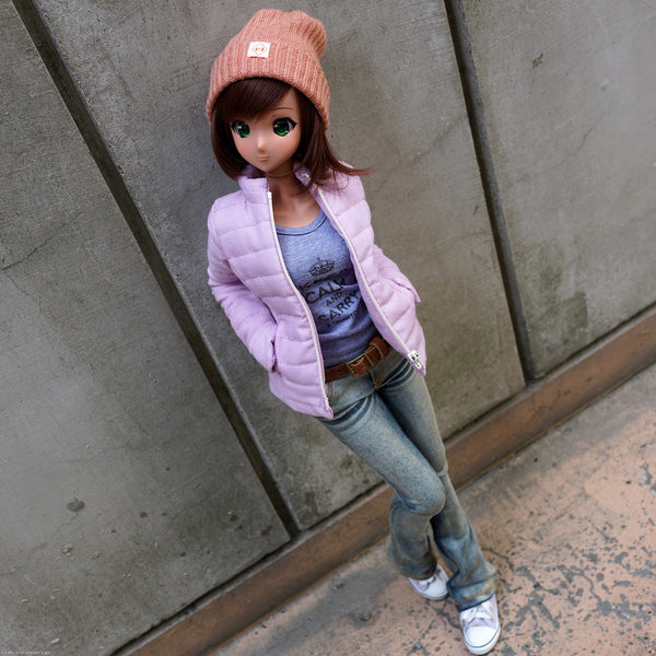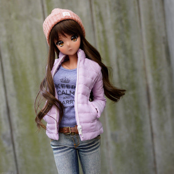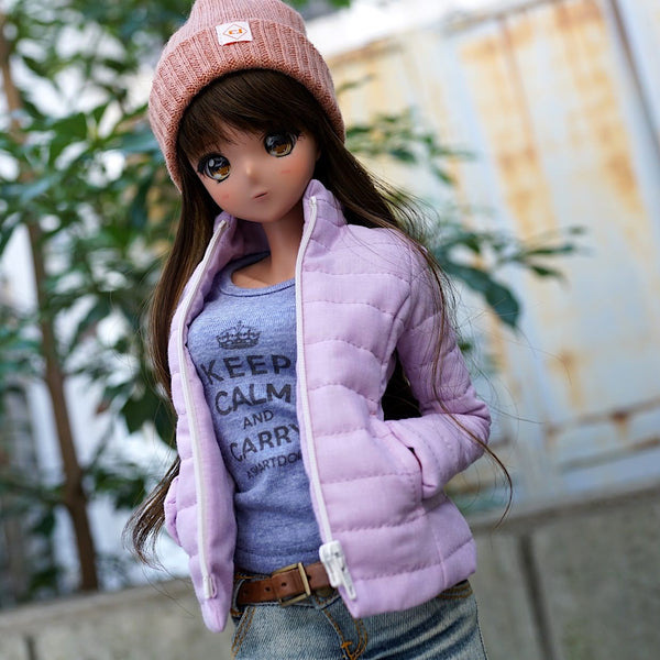 モコモコ感があり、スマードドール女の子達を可愛く旅の移動中包むいいアイテムだ。リブニット キャップとハンドウォーマーとよく似合います。