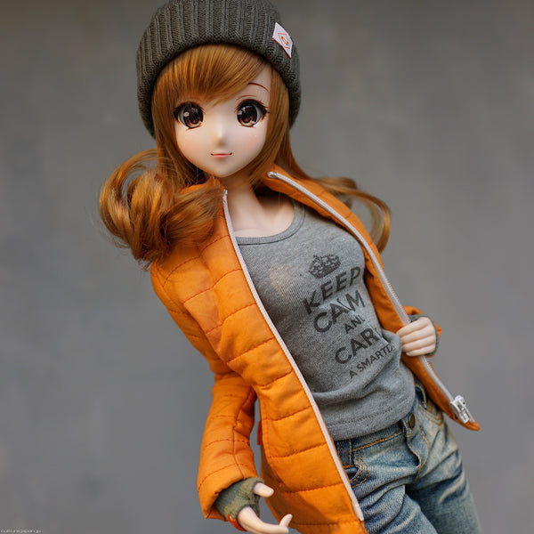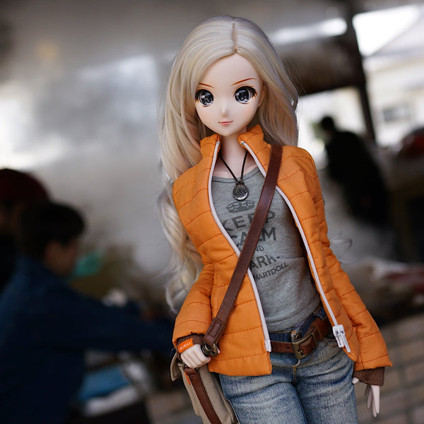 モコモコ感があり、スマードドール女の子達を可愛く旅の移動中包むいいアイテムだ。リブニット キャップとハンドウォーマーとよく似合います。
