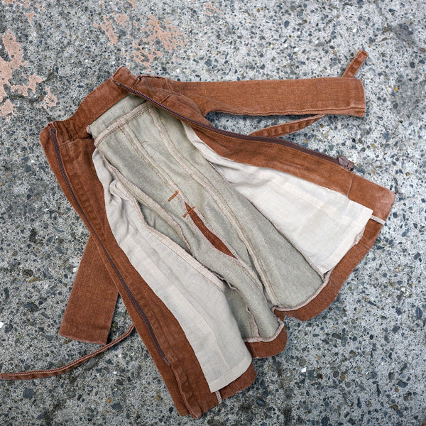 Do note that as with all our used stone washed apparel items - there may be some sand left in the pockets - just pretend its some Diatom shell - go read about it and learn. Also note that you should expect the edges to be worn as we did some post processing too which involves sanding the edges with sandpaper. You may also have worn holes in it with loose threads too.