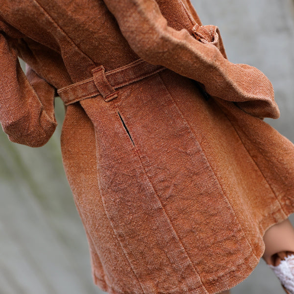 The Duster Jacket is back with a new material that looks just as good as the first one. When the factory that made the previous material went kaput, we tried many different textiles and colors but I really wanted to keep it a brick reddish and this is the result.