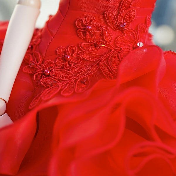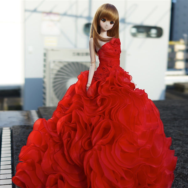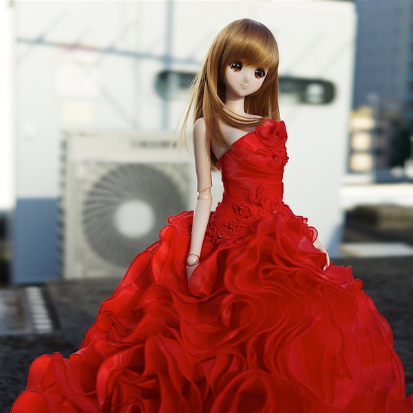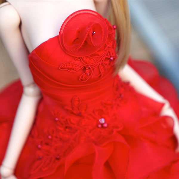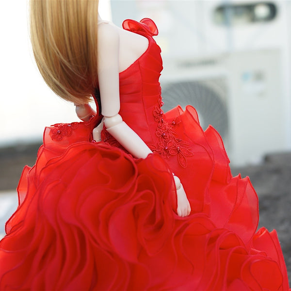 The red gown may stain slightly around the bust when worn for a long time which is why we include an outlet class S bust part for milk color only. Do be careful about staining around the torso and arms too but this should not happen if you are only having your girl wear the dress for a few days only.