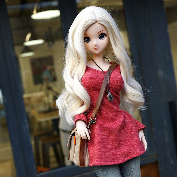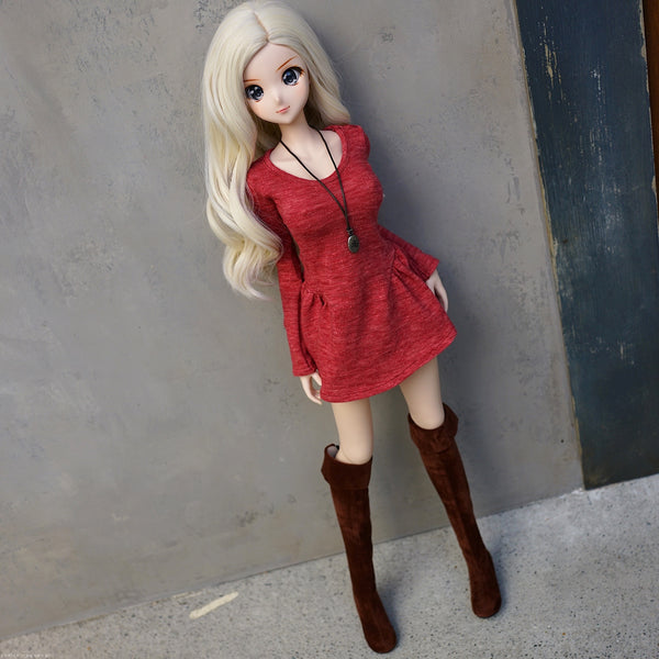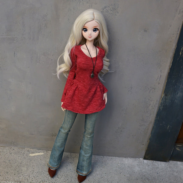 The body hugging Flaire Sweater shows off the Smart Doll body while encompassing a relaxed look through the flaire at the bottom. It looks great on its own where the flaire part acts as a short skirt or with jeans. The pendant is usually worn short but looks great when tied long. Goes well with the satchel bag and double belt. Long Boots go particularly well when the Flair Sweater is worn on its own.