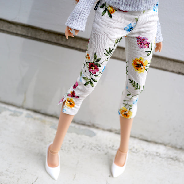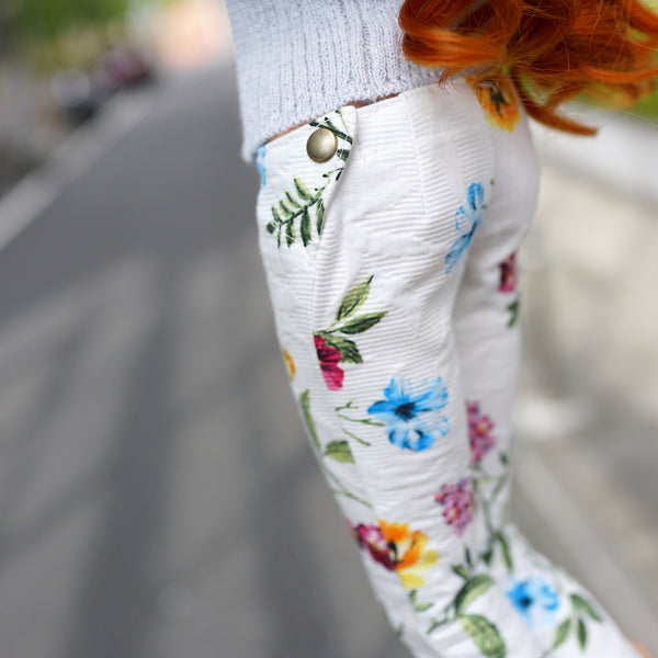 Capri Pants are now available with a floral pattern. Do note that there is a patch on the print somewhere which looks like specs of ink - but is actually part of the floral illustrator file data. I guess it's pollen ;-)
