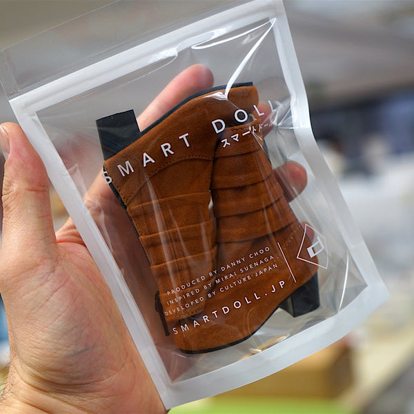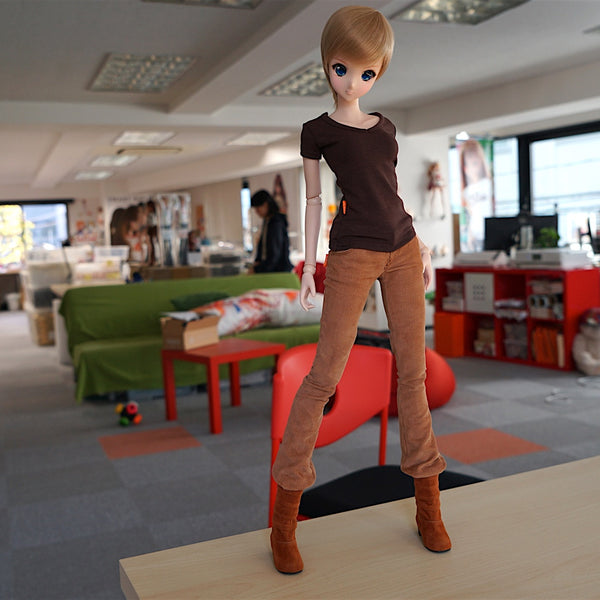 スマートドール女の子用フォールドブーツ。スエードに見えますが、スエードではない。石やたわしでブーツ表面をこするといい感じにユーズド感がでます。