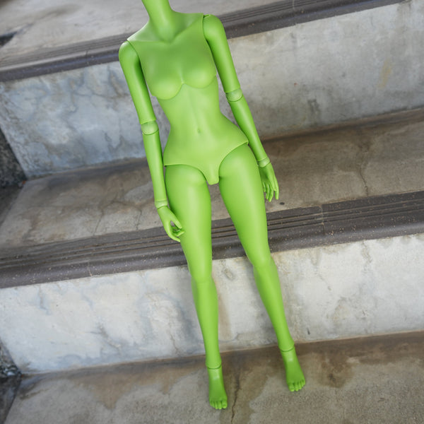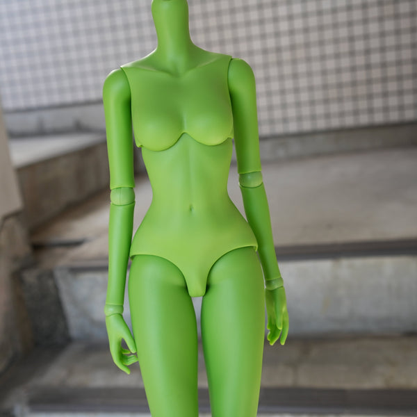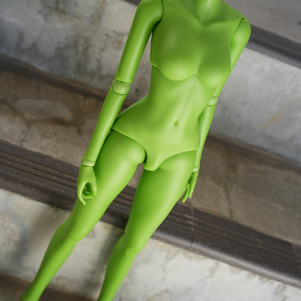 The body ships as a “simplicity kit” that requires assembly. We are unable to pre-assemble the body before shipping, so you will need to assemble it yourself or seek assistance. Attaching the arms and bust is straightforward; however, attaching the shins may require more strength. We advise bending the shaft to a 90-degree angle and then pressing the knee down into the socket within the thigh—also bent at 90 degrees. Listen for a click to ensure proper attachment.
