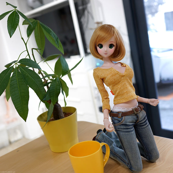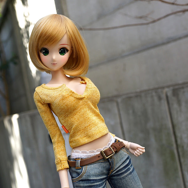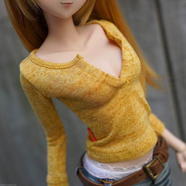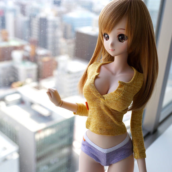 The Henley Neck T-shirt is a tight fit which shows off the Smart Doll body and some cleavage. Goes well with Low Rise bottoms. Fits S - XL busts but looks best in L. XL combination not recommend for going out in public as you may poke somebody's eye out.