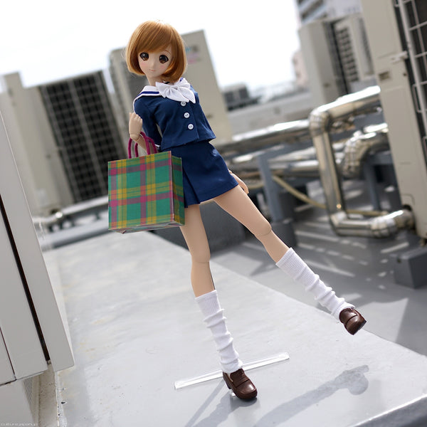伊勢丹セーラー服にはジャケット、リボン、スカートとルーズソックスが付属。ローファーは別売。ダークグレーソックスにもよく似合います。S胸専用。写真に写っている手提げは付いていません。東京の江戸川区で生産しています。