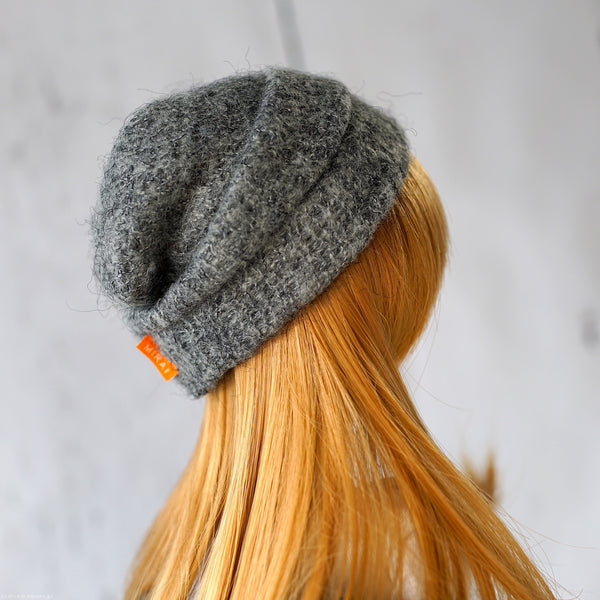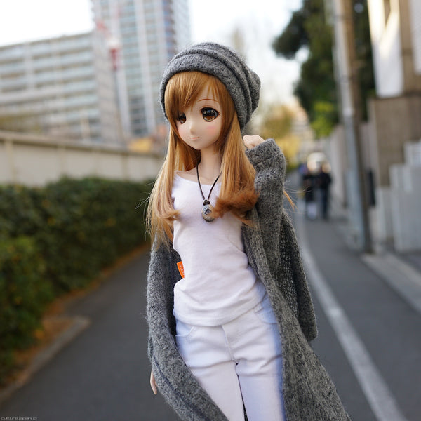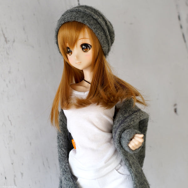 Knit beanie is awesome - you can wear it with a slouch at the back or use your fingers to tuck in the slouch behind the label. Wearing the beanie showing the fringe as you can see in the photos makes Smart Doll look even cuter. Goes particularly well with the Hoodie Knit Coat.