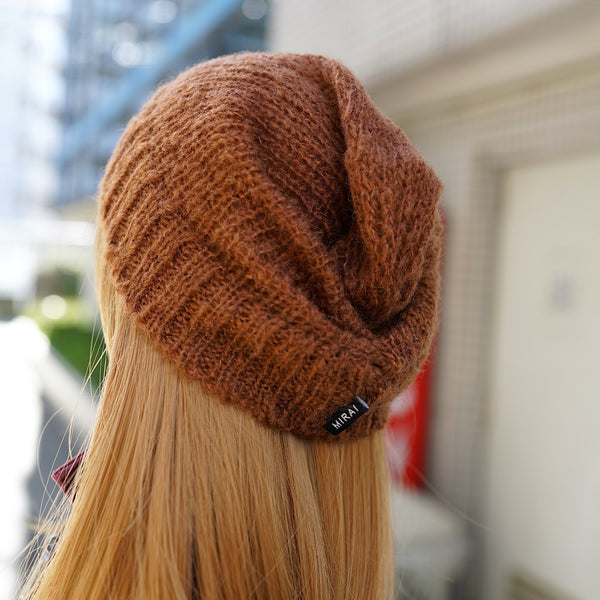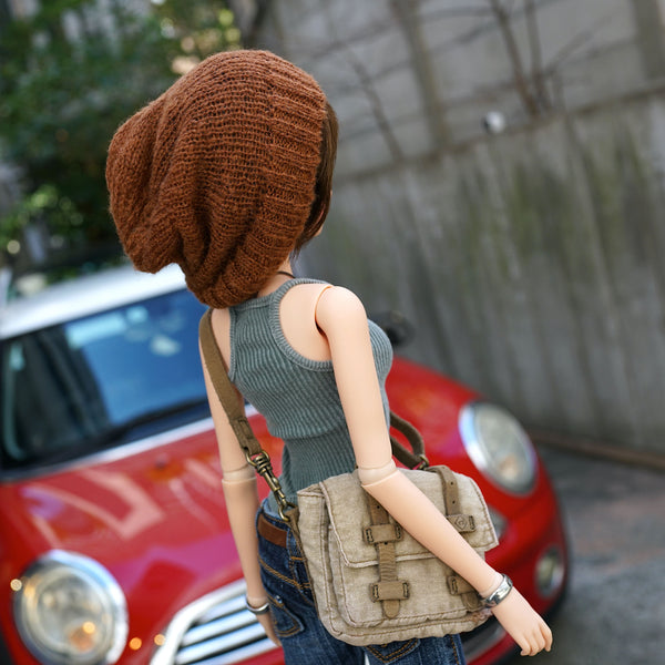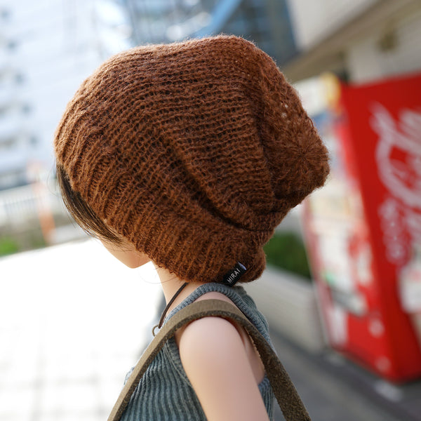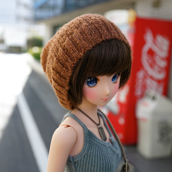 These knit beanies are made in a knit factory in Saitama located just outside Tokyo. Specs are 8 gauge x 1 ply and the yarn type is Dralon Tam which is 55% acrylic, 30% nylon and 15% wool. Not only do these beanies compliment our other apparel items - they are also great for keeping the Smart Doll wigs in check on a windy day or when you are traveling with them.