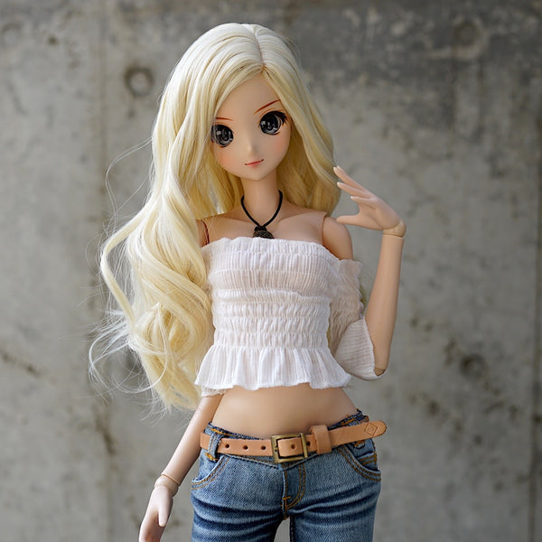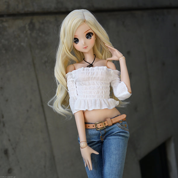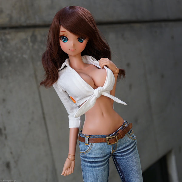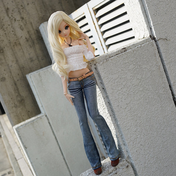 Our jeans are designed so that they show off the slender look of the Smart Doll body. They are such a snug fit that it can be difficult to sit them down without them leaning backwards a bit.