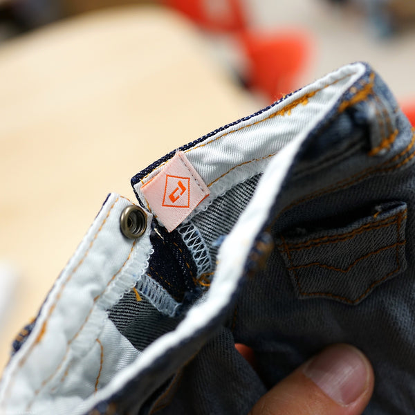 全てのジーンズは手作業でユーズド加工されているため、色のニュアンスやヒゲの形がユニークな作りになっています。