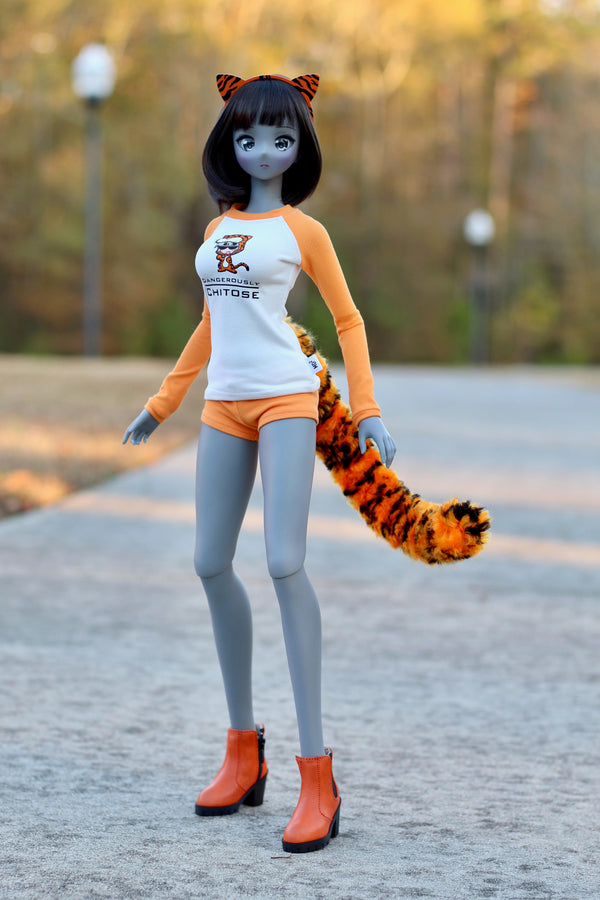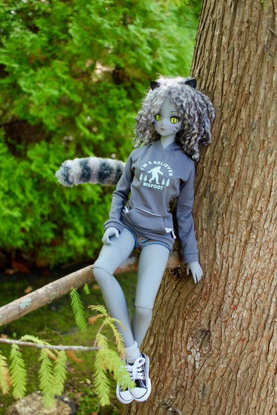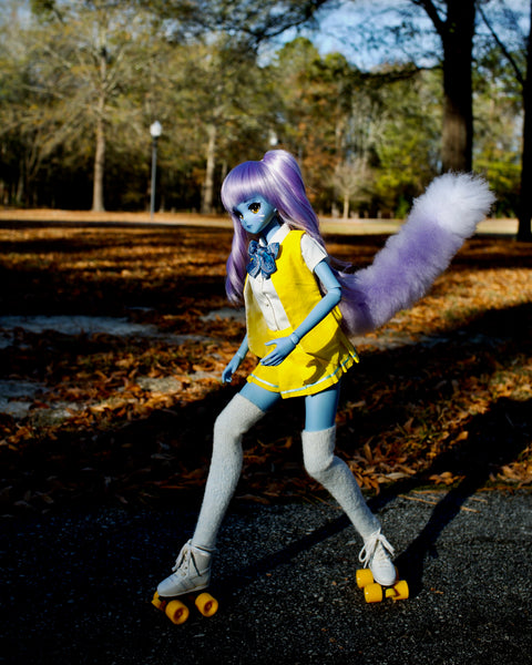 Both of us have always loved making miniatures and we realized immediately that Smart Dolls’ 1:3 scale is both easier to work with than conventional 1:12 or 1:6 sizes,but is also far more amenable to incorporating real materials (such as metal, wood, etc.) and including levels of detail on par with those of their real counterparts. Malachi developed a process for making flexible, wire armature, brushed yarn tails that can could be attached via the stand socket, and that became our first Smart Doll product.