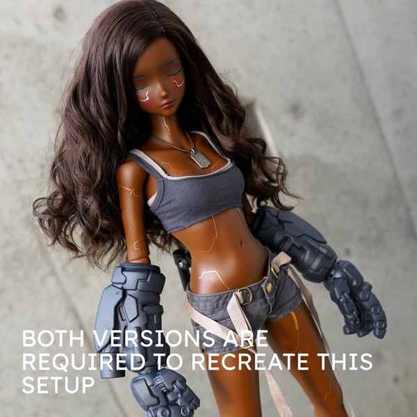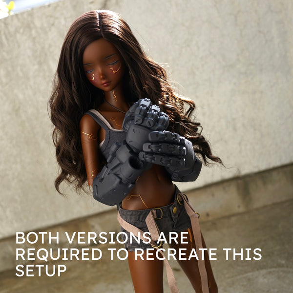 We offer two variations of the Mecha Gauntlets, each tailored for different aesthetics and functionality:
