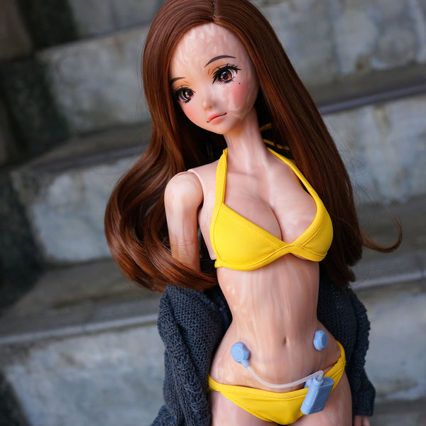 The "marble" skin tone represents burn scarring. While this was designed for Survivor, as the marble effect is created using tea and cinnamon vinyl, folks may want this option part for their tea or cinnamon girls.
