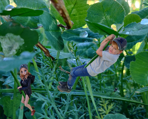 When Nico was about 3 years old, he found the dolls and his sister's photographing so interesting that he squeezed himself into each photo to be part of it.