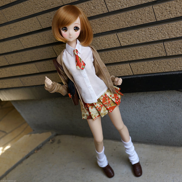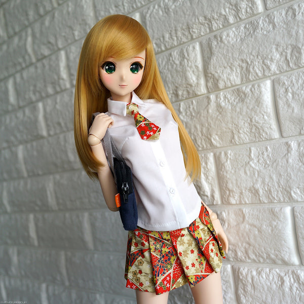 Now in Wagara (A Japanese pattern or design) style - the Mirai High School Uniform comes with a shirt, necktie, skirt and loose socks. Loafers are not included (sorry!) Goes well with dark gray socks and school girl cardigan too.